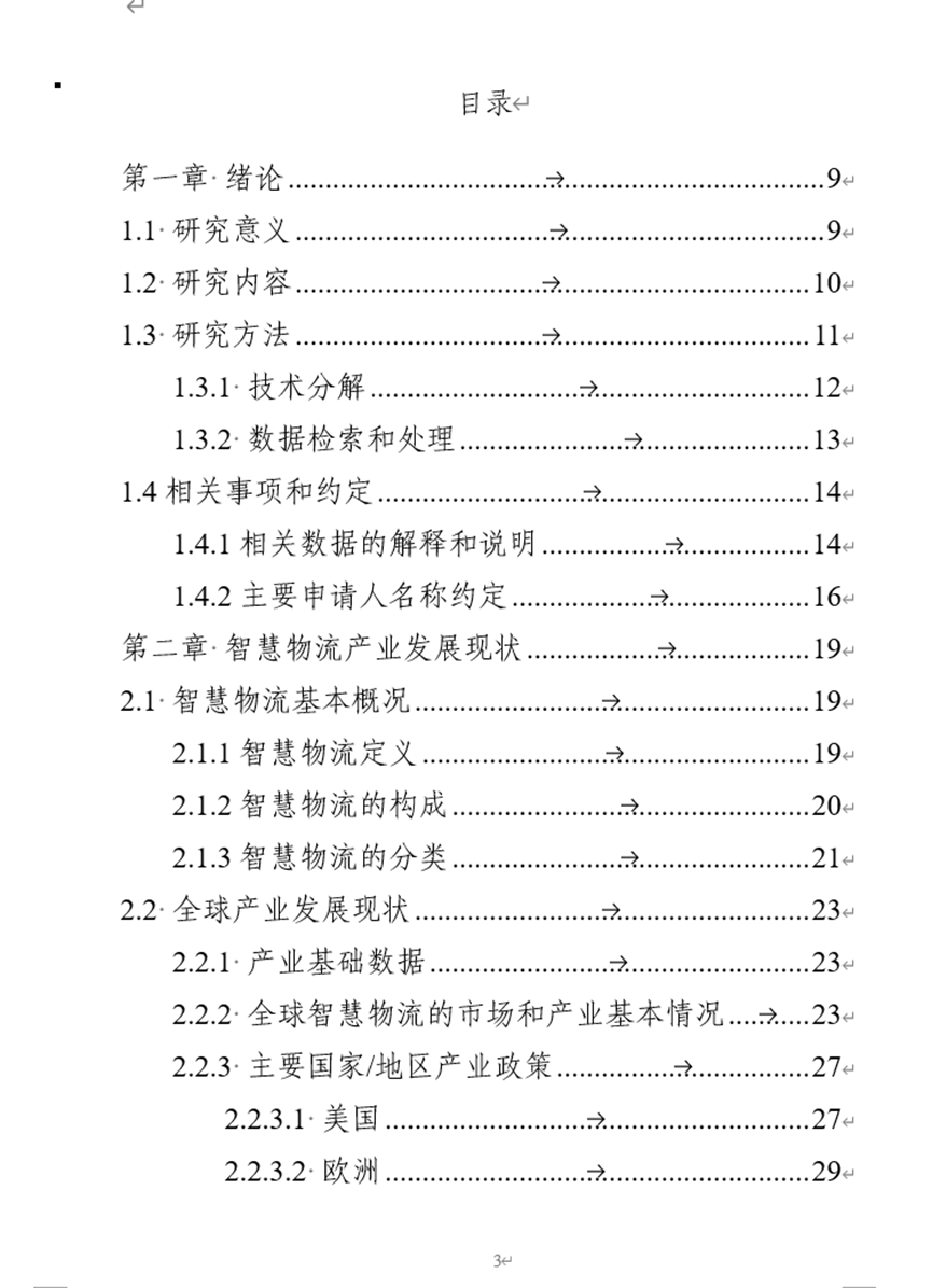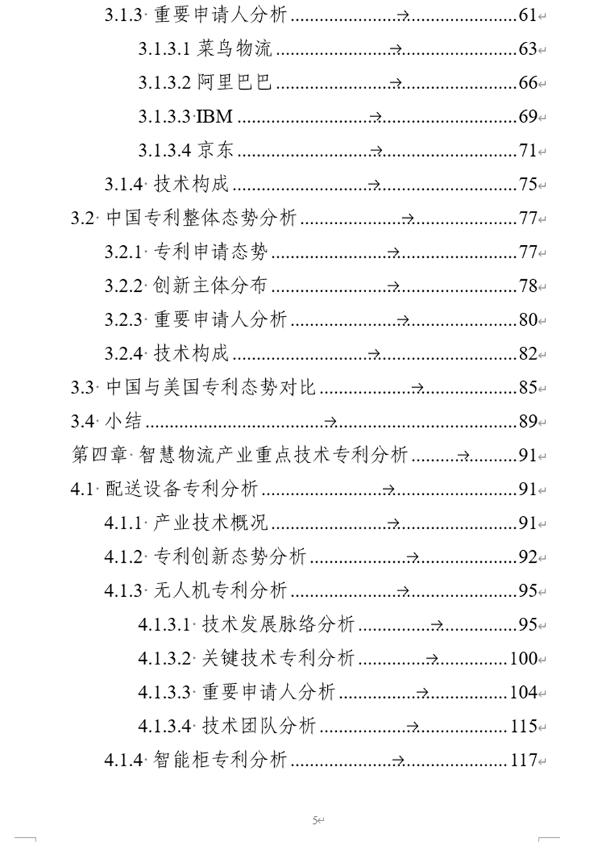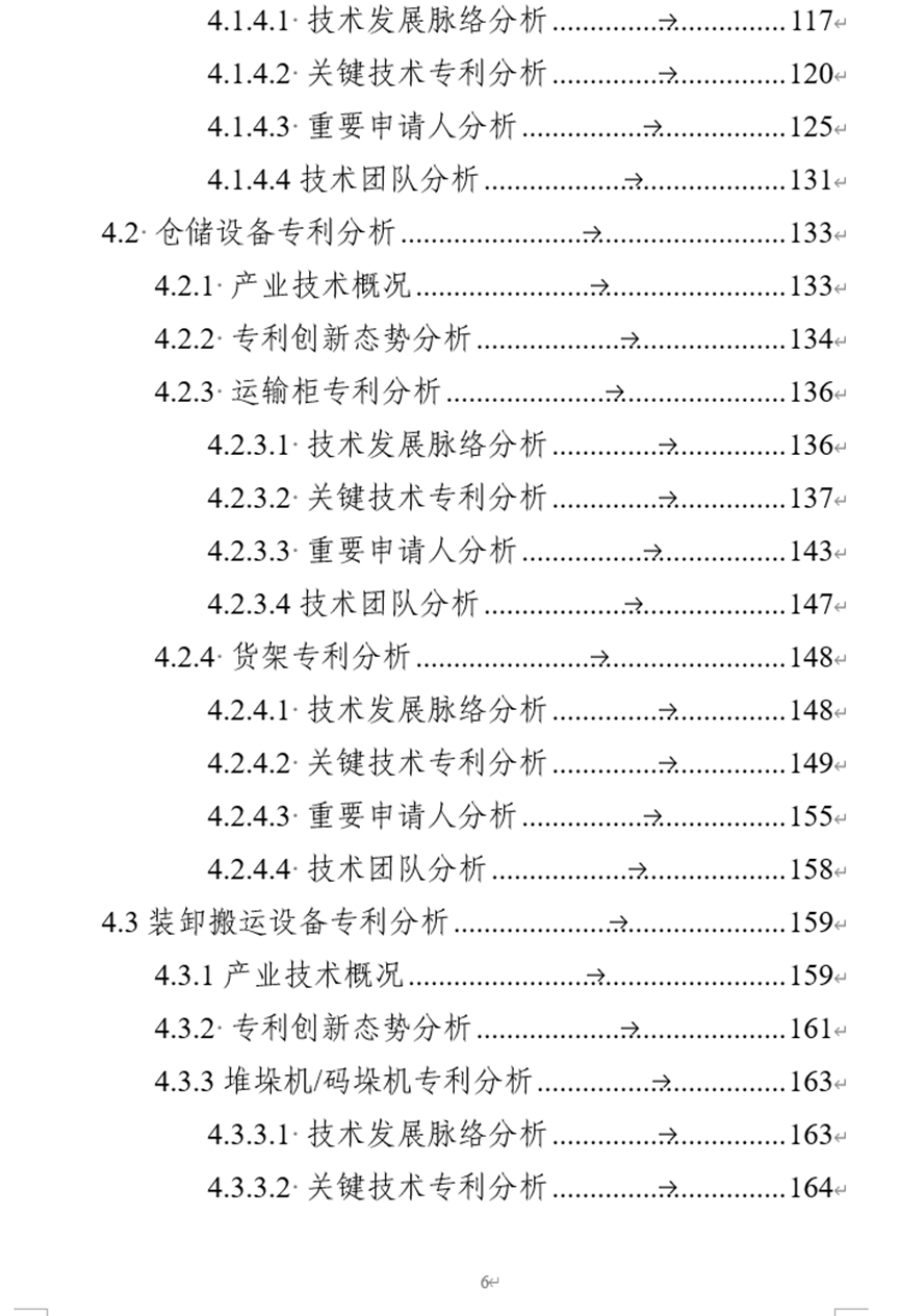 课题组通过调研研究法、文献研究法以及比较研究法对智慧物流专利技术进行了分析。梳理出了配送设备、仓储设备、装卸搬运设备和智能交通系统四个重点技术分支的技术脉络、关键技术专利、重要申请人和重点技术团队。